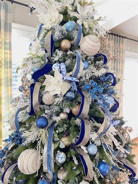 take a look at all these ideas and inspirations for decorating a blue & white christmas! 63 pieces blue christmas decorations set, including large bow christmas tree topper, glitter bow knots, blue poinsettia flowers,.